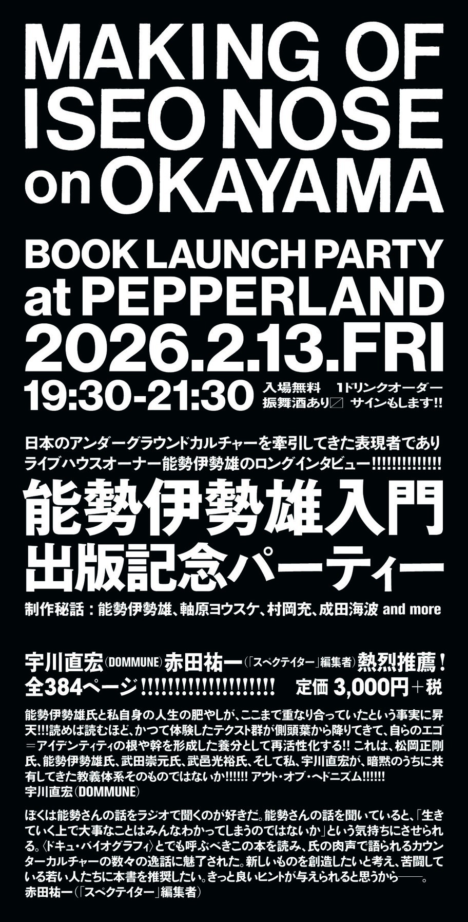 『MAKING OF ISEO NOSE on OKAYAMA•能勢伊勢雄入門』が刊行されます。